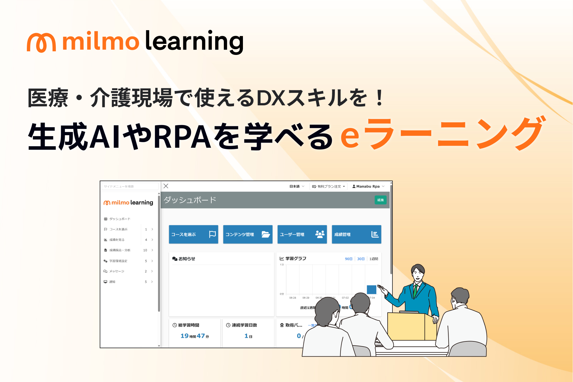 介護を受ける利用者、利用者の家族、介護業界で働く人、介護に関わる人が快適に過ごすためのサービス。これまで電話やFAX、紙媒体が中心だった介護業界に、デジタル技術を導入することで、様々な情報を可視化し、効率的なデータの利活用を推進します。また、他職種連携の強化、地域ケアの促進など、利用者本位のケアを可能にします。