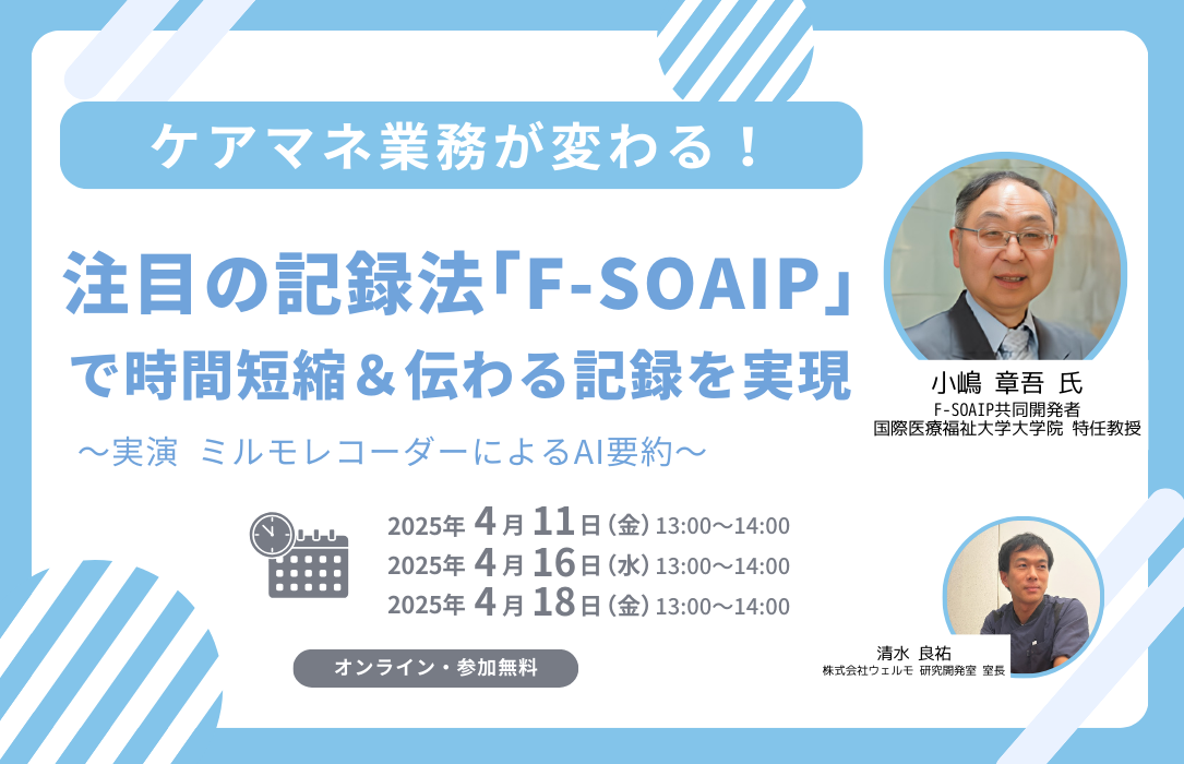 【無料ウェビナー開催】ケアマネ業務が変わる!注目の記録法「F-SOAIP」で時間短縮&伝わる記録を実現
