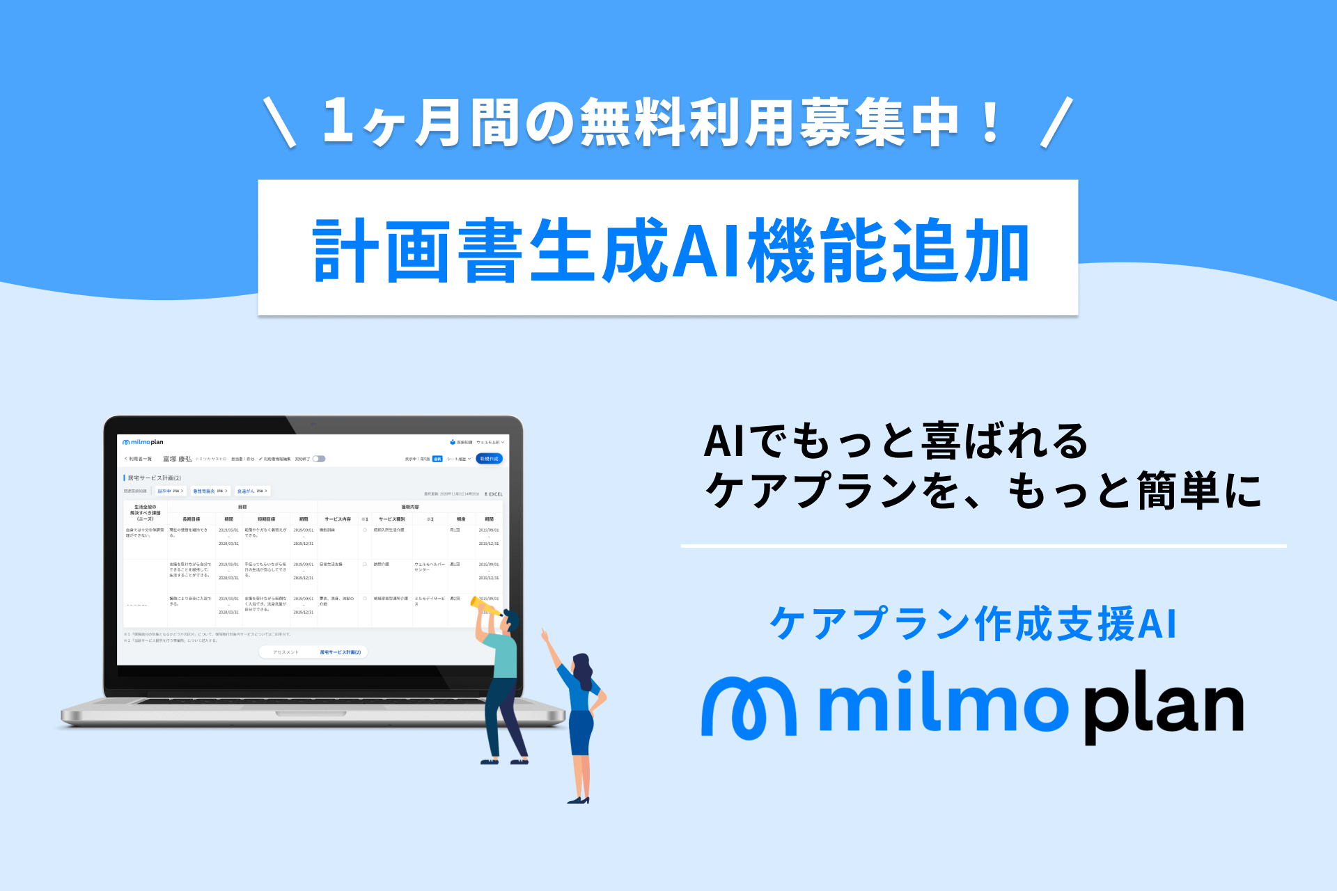 新機能を発表!株式会社ウェルモのケアプラン作成支援AI「ミルモプラン」に計画書生成AI機能を追加