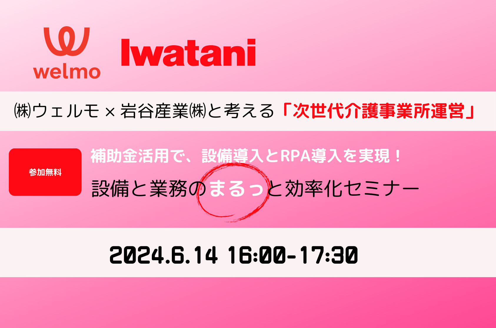 「㈱ウェルモ×岩谷産業㈱と考える「次世代介護事業所運営」〜設備と業務のまるっと効率化セミナー」開催のお知らせ