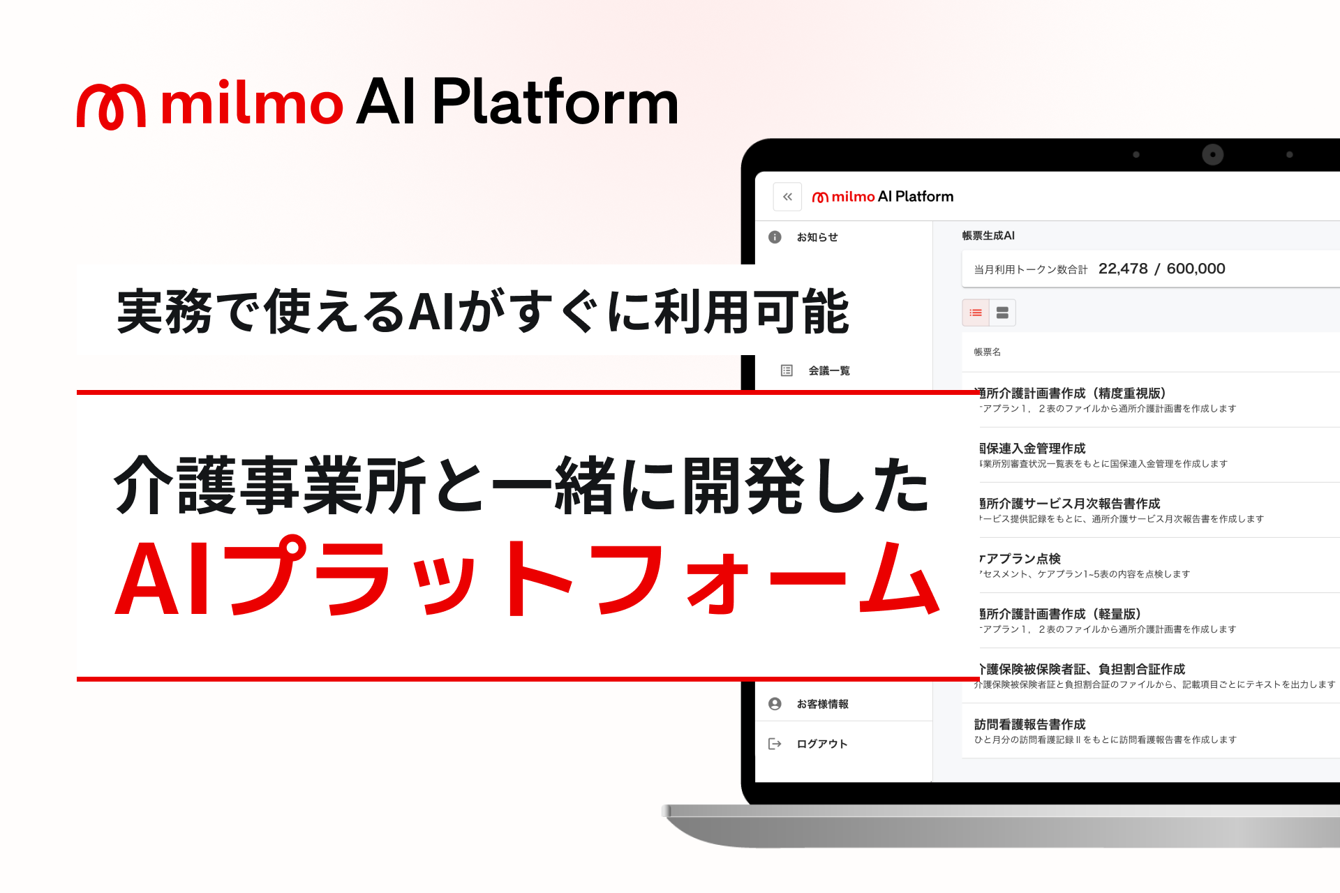 介護業界特有の帳票作成をAIがサポート!実務ですぐに使える「milmo AI プラットフォーム」を正式リリース